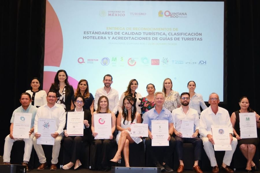 A través de la Secretaría de Turismo (Sedetur), el Gobierno del Estado entregó Reconocimientos de Estándares de Calidad Turística, Clasificación Hotelera y Acreditaciones de Guías de Turistas, un acto que busca distinguir el esfuerzo, compromiso y excelencia de los prestadores de servicios turísticos del Caribe Mexicano.