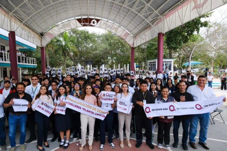 CANCÚN.- Al entregar un nuevo domo en el Colegio de Bachilleres “Plantel Cancún Cuatro”, la gobernadora Mara Lezama Espinosa expresó que las juventudes de Quintana Roo tienen el derecho de contar con una educación de calidad y este gobierno humanista con corazón feminista está comprometido a garantizarla.
