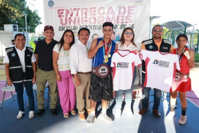ISLA MUJERES.- Con la finalidad de continuar apoyando a las niñas, niños y juventudes isleñas, el gobierno municipal que encabeza la alcaldesa Atenea Gómez Ricalde, entregó uniformes a las y los estudiantes de la Escuelita Deportiva Municipal, en la Zona Continental del municipio.