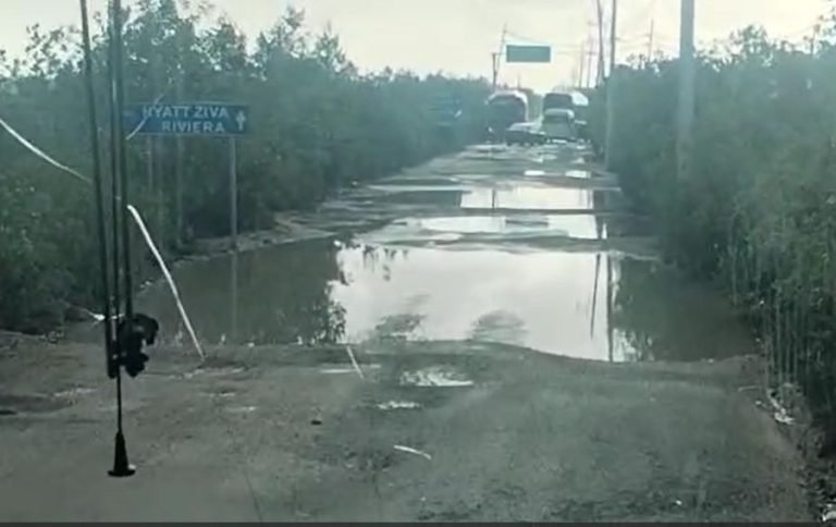 Baches e inundaciones han dejado severas afectaciones a las decenas de vehículos que circulan diariamente por ese acceso para llegar a alguno de los hoteles de 5 estrellas, además del temor de quienes no conocen la vialidad de quedarse atascados, por lo que se vuelve en un recorrido a vuelta de rueda.