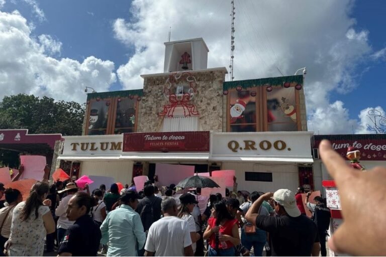 TULUM.- Trabajadores municipales sindicalizados se manifestaron este martes frente al Palacio Municipal de Tulum para exigir el pago de prestaciones laborales pendientes, entre ellas aguinaldos, canastas navideñas y primas, contempladas en sus Condiciones Generales de Trabajo.