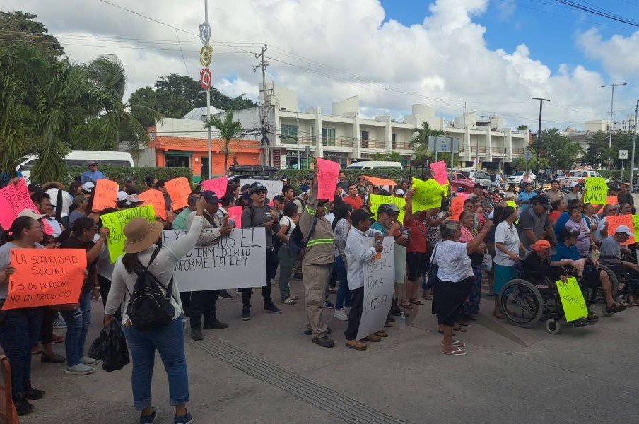 Durante la protesta, el secretario general del Sindicato Único de Trabajadores del Ayuntamiento, Virgilio Kinil Canul, informó que el conflicto se originó por el retraso en el pago del aguinaldo 2025 a 35 jubilados sin pensión y ocho trabajadores activos, quienes no recibieron esta prestación en tiempo y forma.