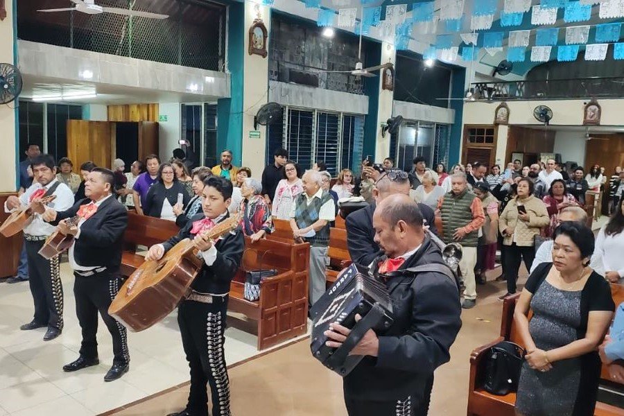 El acto estuvo acompañado por una emotiva serenata a cargo de mariachis, quienes interpretaron diversas melodías dedicadas a la Virgen, generando un ambiente solemne y festivo al interior del santuario. Los cantos y la música reforzaron el sentido de comunidad entre los asistentes, quienes participaron con respeto y fervor en cada momento de la celebración.