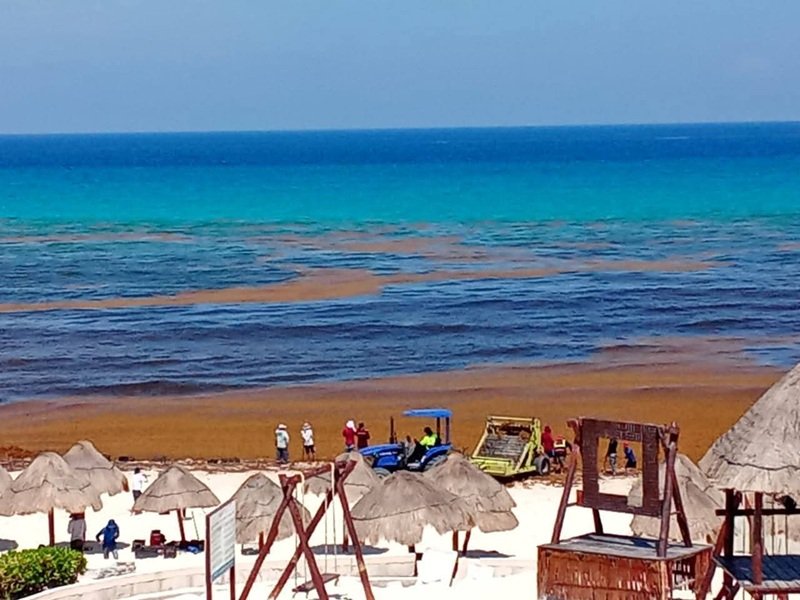 PLAYA DEL CARMEN.- La aparición de una extensa franja marrón en el océano Atlántico, detectada mediante imágenes satelitales recientemente, podría estar relacionada con el recale atípico de sargazo registrado recientemente en playas de Quintana Roo, entre ellas Playa del Carmen, donde arribaron alrededor de 25 toneladas de esta macroalga fuera de la temporada habitual.