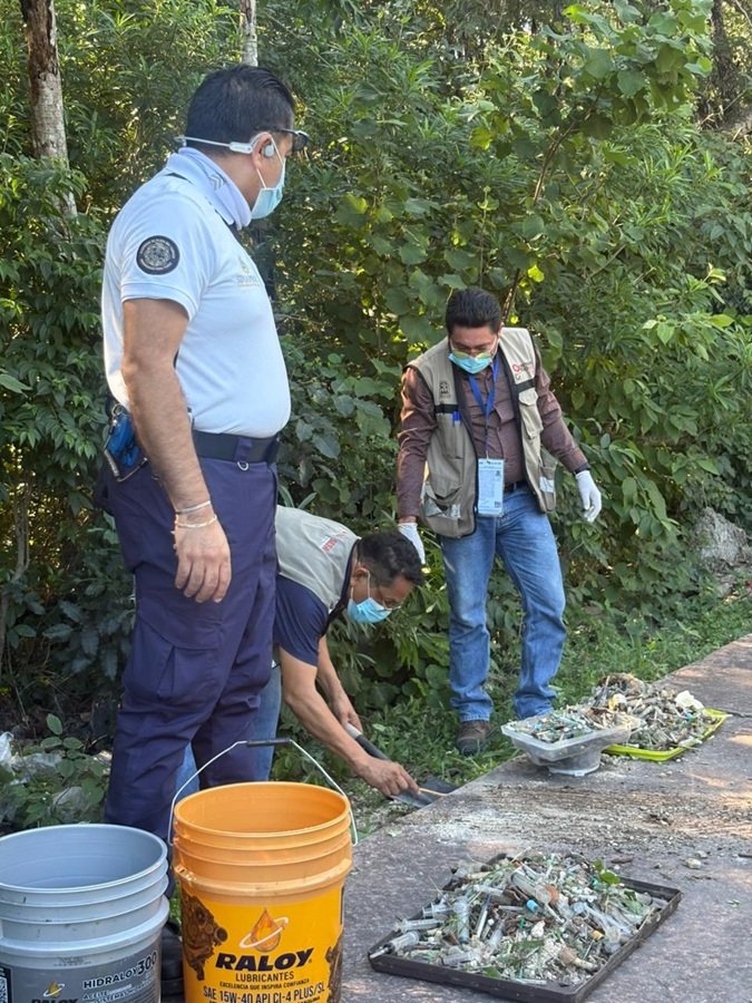 El hallazgo ocurrió en las inmediaciones de Paseo Central y la avenida Petempich, donde autoridades estatales y municipales acudieron tras recibir el reporte ciudadano. En el lugar se encontraron cerca de cuatro kilogramos de residuos punzocortantes, los cuales estaban abandonados en un espacio público, sin ningún tipo de identificación sobre su origen.