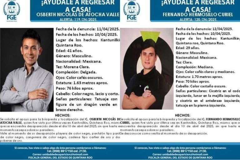 Te puede interesar: Desaparecen empresario y colaborador en Kantunilkín; FGE emite alertas