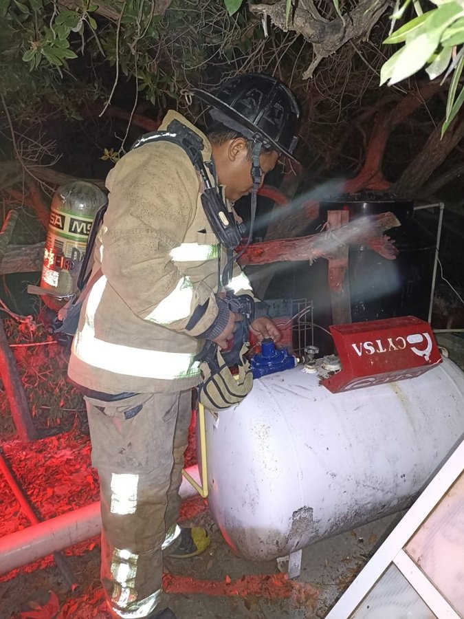 Bomberos acudieron de inmediato al sitio para verificar la situación. Después, se entrevistaron con el cocinero Alberto N, quien explicó que el percance ocurrió debido a la fractura de una tubería que conecta con el tanque de gas estacionario.