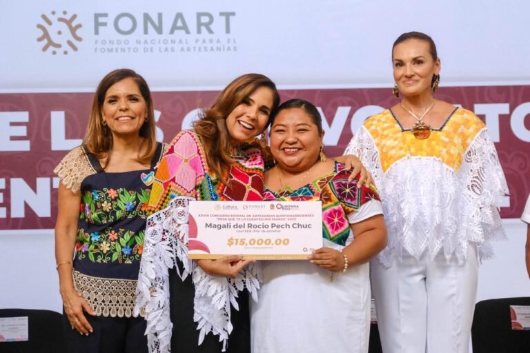 Cancún.- Al entregar premios a los y las artesanas ganadoras del VIII Concurso Estatal de Textil “Chuuuy K´Káab 2025” y del XXVIII Concurso Estatal de Artesanías “Deja que te lo cuenten mis manos 2025”, la gobernadora Mara Lezama Espinosa expresó que este gobierno humanista con corazón feminista visibiliza el talento, la historia viva, la cultura, el arte del pueblo indígena maya.
