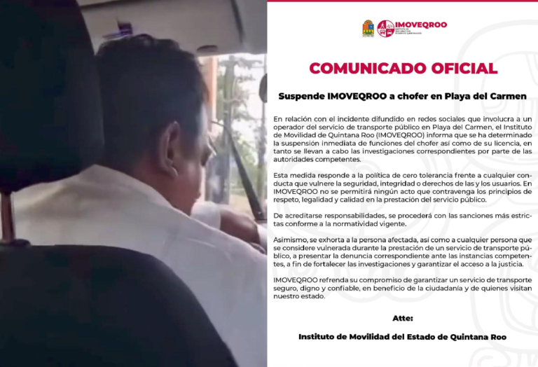 El Imoveqroo subrayó que la decisión de suspender al operador responde a su política de cero tolerancia ante conductas que vulneren la seguridad, integridad o derechos de los usuarios de transporte público.