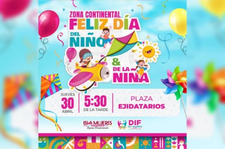 ISLA MUJERES.– Con el objetivo de brindar momentos de alegría, convivencia y sano esparcimiento a la niñez, el Ayuntamiento de Isla Mujeres, encabezado por la alcaldesa Atenea Gómez Ricalde, a través del Sistema para el Desarrollo Integral de la Familia (DIF) municipal, invita a celebrar el Día del Niño y la Niña en la Zona Continental con una gran feria.