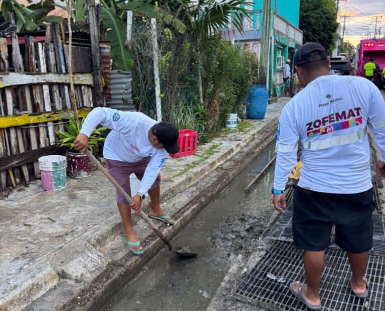 Zofemat también reforzó sus acciones de mantenimiento en áreas de playa y zonas costeras, con el objetivo de que las corrientes pluviales no arrastren basura hacia el mar, protegiendo así al ecosistema y preservando la imagen del destino, además de apoyar desde las 5 de la mañana de hoy sábado, con la limpieza del drenaje pluvial en la colonia Metereológico.