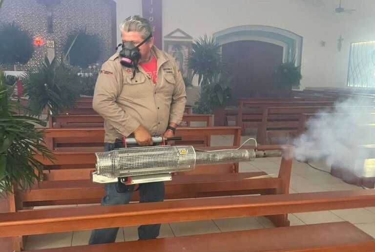 ISLA MUJERES.– Como parte de las acciones permanentes para proteger la salud de las familias isleñas y de quienes visitan el municipio durante la temporada vacacional, el gobierno de Isla Mujeres, que encabeza la presidenta municipal Atenea Gómez Ricalde, en coordinación con la Secretaría de Salud de Quintana Roo y el área de Vectores de la Jurisdicción Sanitaria No. 2, llevó a cabo una jornada de termonebulización en parroquias y capillas del municipio, previo al inicio de la Semana Santa.