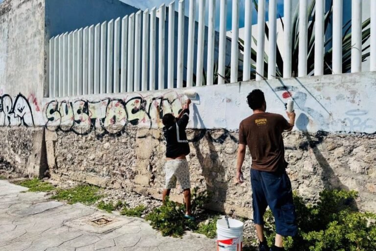 La Secretaría de Seguridad Ciudadana del Municipio de Isla Mujeres en estrecha coordinación con el Centro de Justicia Cívica y Retención Municipal, supervisaron y custodiaron los trabajos de reparación de daños ocasionados con grafiti, a las mismas personas que fueron sorprendidas a través de las cámaras del C2, en distintas zonas de la Isla incluyendo bardas de propiedad privada y patrimonio del ayuntamiento.