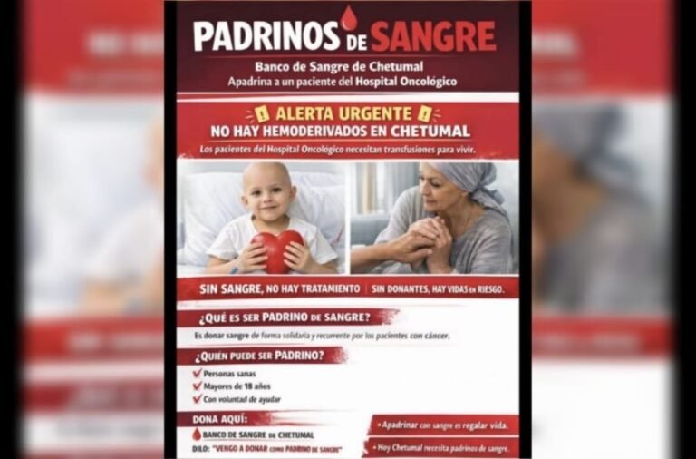 Un dato importante es que la falta de cultura de donación voluntaria es una de las principales causas del desabasto, por lo que es necesario generar conciencia social permanente. Mientras tanto, la campaña “Padrinos de Sangre” se mantiene activa como una línea de esperanza para los pacientes con cáncer del Hospital Oncológico de Chetumal, quienes hoy enfrentan una lucha doble contra la enfermedad y contra la escasez de sangre que les permite seguir viviendo.