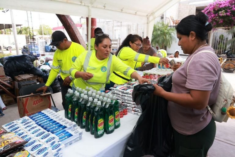 ISLA MUJERES.- El gobierno municipal que encabeza la alcaldesa Atenea Gómez Ricalde continúa promoviendo la cultura del reciclaje y apoyando la economía familiar a través del Programa “Tiendita Ecológica”, que hoy llegó a la colonia Montes de Los Olivos, en la Zona Continental.