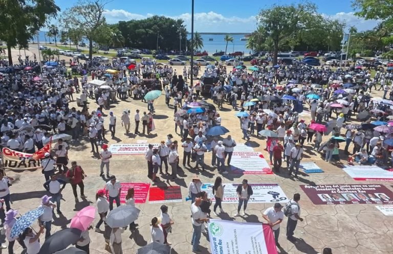 CHETUMAL.-Este miércoles se cumple en Quintana Roo una semana desde que iniciaron las movilizaciones de los trabajadores de la educación en la que exigen se derogue la reforma laboral del ISSSTE al considerar que hay serias repercusiones laborales, salariales y de pensiones.