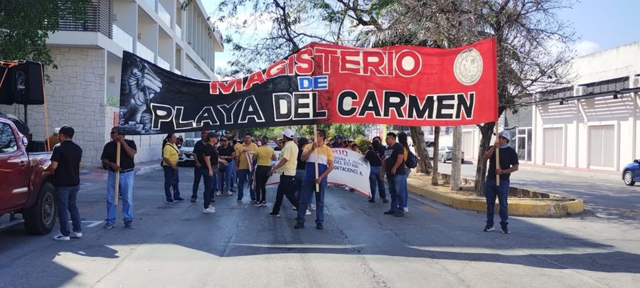 Como puede leerse en las mantas que portaba el contingente de docentes, “por una ley del Issste digna y justa para los trabajadores del Estado, no al aumento de las aportaciones al Issste”; y otra con los colores rojinegros con la leyenda “Magisterio de Playa del Carmen”.