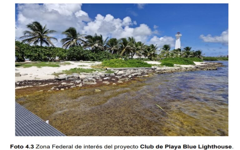 El documento, publicado en la Gaceta de la Secretaría del Medio Ambiente y Recursos Naturales (Semarnat) y analizado por la Dirección General de Impacto y Riesgo Ambiental (Dgira), especifica que “Club de playa Blue Lighthouse” estará ubicado en la Zona Federal Marítimo Terrestre localizada en la Playa colindante con el Lote ubicado en la Avenida Malecón S/N en el Km. 0+000 de la carretera el Cafetal -Mahahual, localidad de Mahahual, Othón P. Blanco.