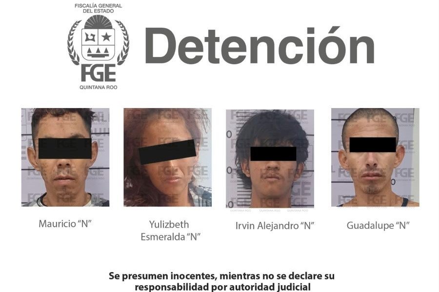 Las evidencias aseguradas, así como las personas detenidas fueron puestos a disposición de la autoridad correspondientes, en el término constitucional previsto definirán la situación jurídica de Yulizbet Esmeralda “N”, Mauricio “N”, Irvin Alejandro “N” y Guadalupe “N”.