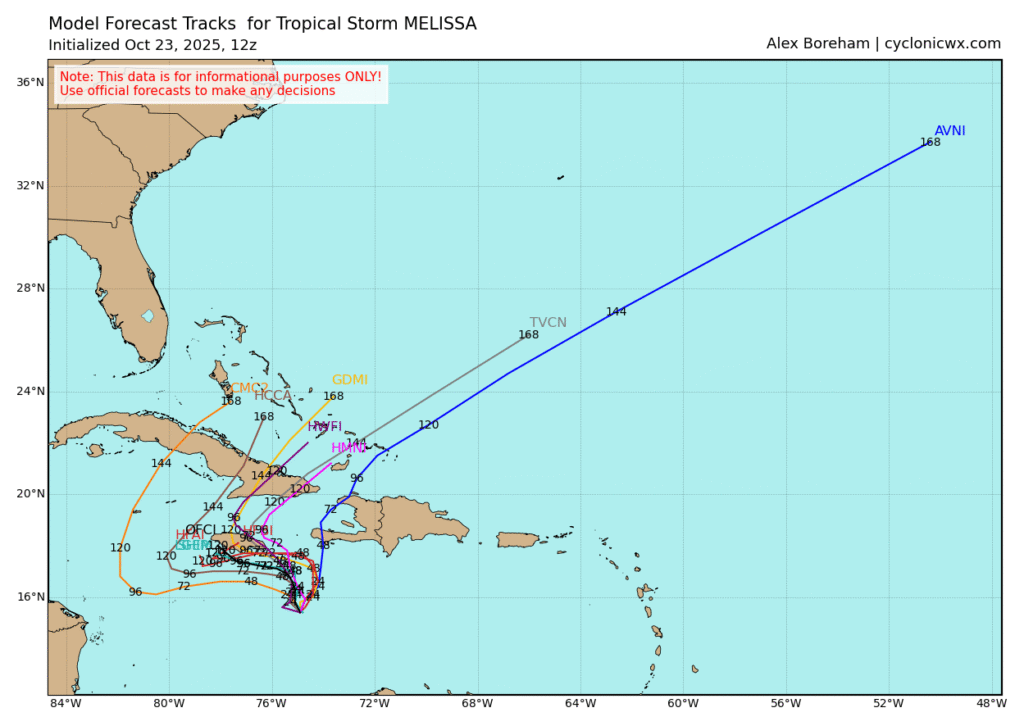 De acuerdo con el pronóstico, Melissa podría acercarse a Jamaica y al suroeste de Haití durante el fin de semana, generando condiciones de huracán a partir del viernes por la noche o sábado en las zonas bajo vigilancia.