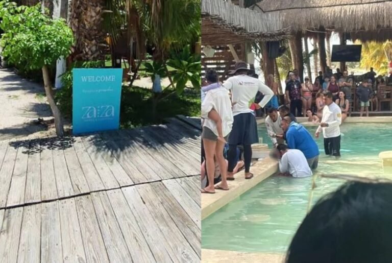 ISLA MUJERES.– Un menor de edad fue sacado inconsciente de una piscina y después perdió la vida esta tarde en el club de playa Zaza ubicado en el municipio de Isla Mujeres.