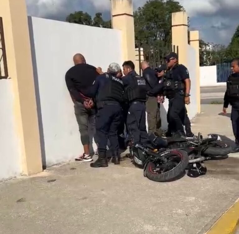 Cancún.- Una intensa movilización policiaca registrada esta tarde dejó como saldo dos personas detenidas, a quienes les aseguraron dosis de droga y una motocicleta con reporte de robo, en el fraccionamiento Vista Real de Cancún.