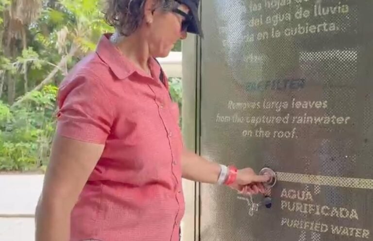 Tulum.- Polémica ha generado esta tarde un breve video que circula en redes sociales, en donde se logra captar a una turista que intentó usar los bebedores del Parque Jaguar, los cuales se encuentran sin funcionar.