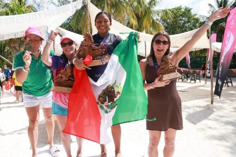 ISLA MUJERES.– En el marco de la conmemoración del Día Internacional de la Mujer, se llevó a cabo la competencia de aguas abiertas “El Cruce de Mujeres”, la cual reunió a 150 nadadoras de 12 países, quienes recorrieron 10 kilómetros, saliendo desde Playa Caracol, en Cancún, hasta Club Albatros, en Isla Mujeres.