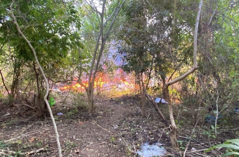PLAYA DEL CARMEN.- Un incendio registrado en un predio utilizado por personas en situación de calle movilizó la tarde de este viernes a cuerpos de emergencia en el campo de la colonia Ejido, luego de que el fuego se saliera de control al intentar preparar alimentos.