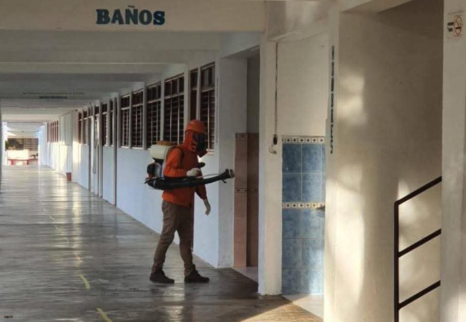 La fumigación comprenderá los salones de clase, oficinas administrativas, biblioteca, baños y patios.