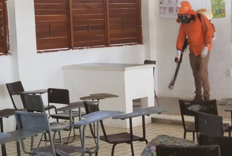 La fumigación comprenderá los salones de clase, oficinas administrativas, biblioteca, baños y patios.