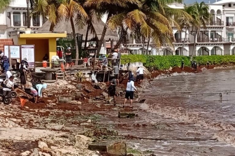 Con este nuevo recale, son ya 2 mil toneladas de sargazo las que han llegado a la costa de Playa del Carmen, fuera de temporada de la macroalga.