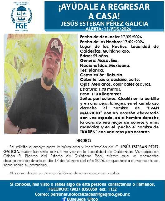 Con este caso, suman ya son 11 personas desaparecidas en el sur de Quintana Roo en lo que va del presente año.