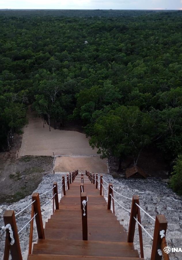 Con respecto a la escalinata, refirió que visitantes y ejidatarios exigían esta restauración desde 2019, cuando se suspendió el ascenso debido al desgaste natural provocado por el paso de turistas.