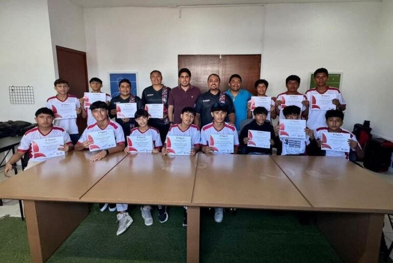 Los entrenadores de la selección, la profesora Sharon Esmeralda UC Santos y el profesor Brandon Díaz Gamero, recibieron igualmente el reconocimiento por su dedicación y compromiso en la formación de estos jóvenes atletas.