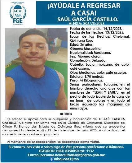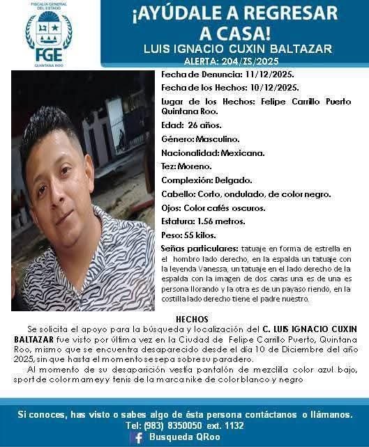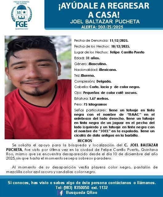 Otros dos reportes también se emitieron en Felipe Carrillo Puerto, por la desaparición de Luis Ignacio Cuxim Baltazar y Joel Baltazar Pucheta, de 36 y 31 años, respectivamente.