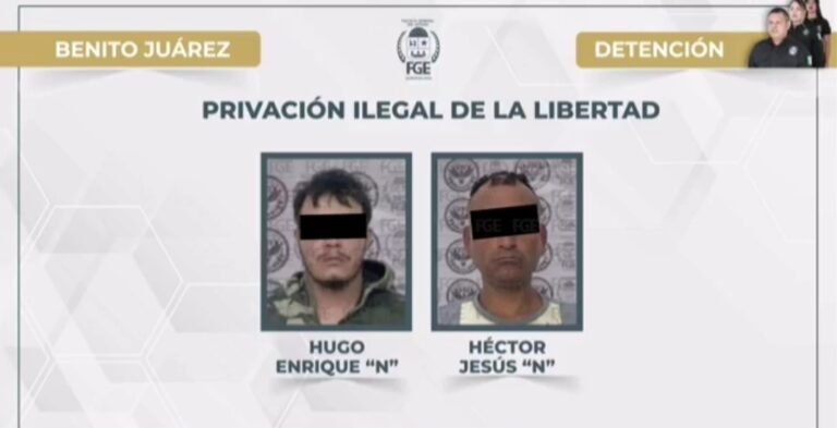 CANCÚN.— Elementos de la Policía de Investigación de la Fiscalía detuvieron a dos hombres por su probable participación en el delito de privación ilegal de la libertad, tras un operativo realizado en las inmediaciones de la colonia irregular La Roca, en el municipio de Benito Juárez.