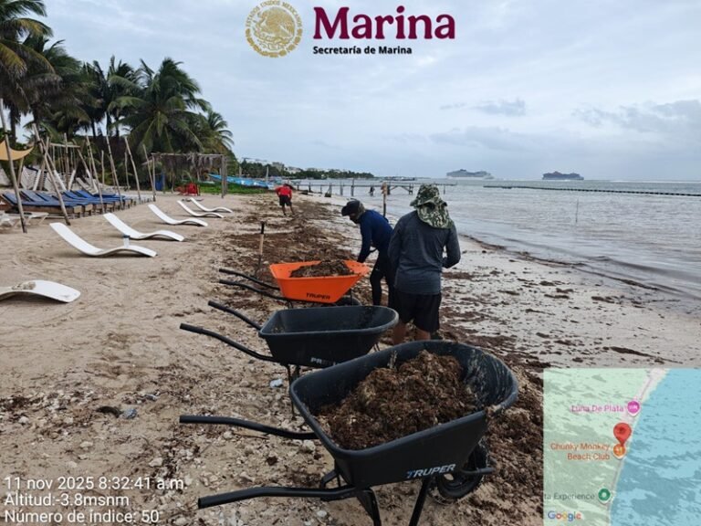 CANCÚN.- La temporada de sargazo 2025 concluyó con más de 91 mil toneladas recolectadas en Quintana Roo, informó la Secretaría de Marina (Semar) en un comunicado. Pese a ello se mantiene activa la Estrategia de Atención al Sargazo 2025, debido a que el alga continúa llegando a las costas, aunque en menor volumen.