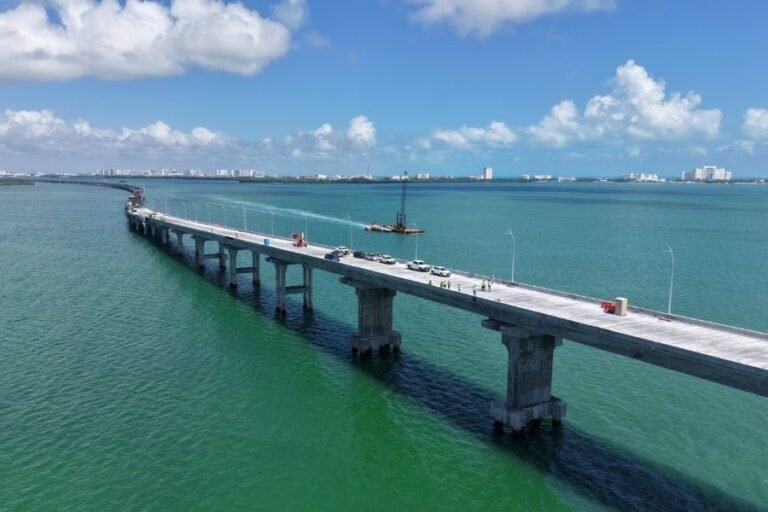 CANCÚN.- El Puente Vehicular Nichupté supera ya el 96 por ciento y se enfila ya a la conclusión de su construcción, para que en abril sea inaugurado por autoridades de los tres niveles de gobierno, encabezadas por Claudia Sheinbaum, presidenta de México, y Mara Lezama, gobernadora del estado.