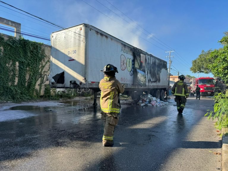 CANCÚN.- El contenedor de un tráiler de la empresa Dunosusa se incendió esta mañana, al parecer por un corto circuito en la Región 220 de esta ciudad.