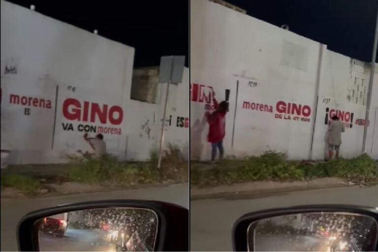 CANCÚN.- La pinta de bardas con el nombre de «Gino» con el logotipo de Morena continúa en diversos puntos del estado.