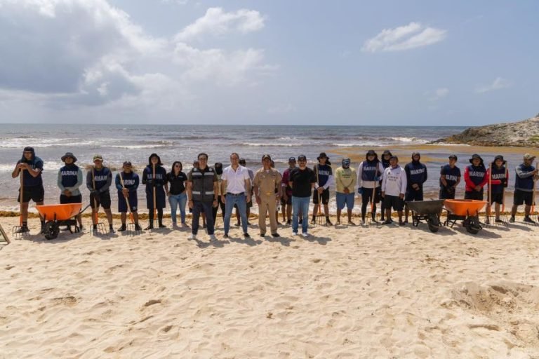 Las tareas son encabezadas por la Zona Federal Marítimo Terrestre (Zofemat) Tulum, que ha mantenido brigadas activas de limpieza todos los días, incluso antes del reforzamiento con personal naval.