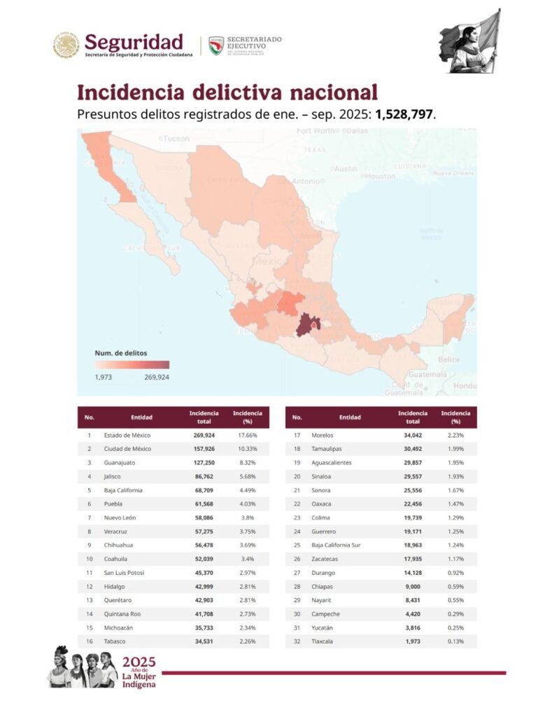 CANCÚN.- El Secretariado Ejecutivo del Sistema Nacional de Seguridad Pública (SESNSP), reveló que en Quintana Roo fueron cometidos 5 mil 089 delitos contra “la vida y la integridad corporal” de enero a septiembre del presente año, en comparación del mismo periodo del 2024 que fue de 5 mil 122, con disminución de 33 incidentes, es decir, bajó la incidencia un 0.64 por ciento.