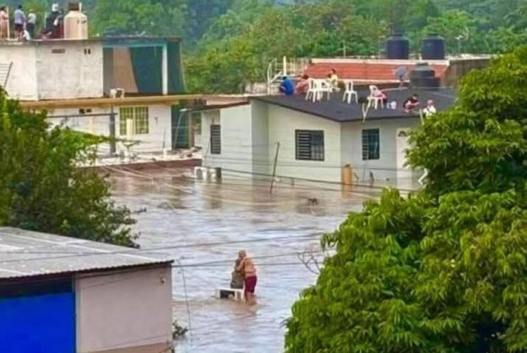 -Poza Rica permanece bajo el agua; rescatan a familias atrapadas tras el desbordamiento del río Cazones y despliegan fuerzas federales en la zona norte de Veracruz.