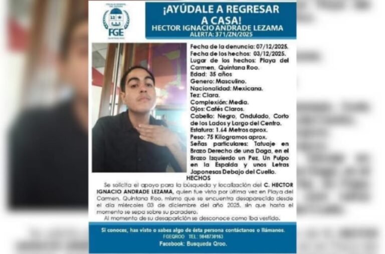 Héctor Ignacio Andrade Lezama se había establecido en Tulum, donde se desempeñaba como chef ejecutivo, con una destacada trayectoria en el ámbito gastronómico. Apenas en noviembre pasado impartió una conferencia magistral ante estudiantes de la Universidad Tecnológica de Tulum, lo que refuerza el perfil profesional y activo que mantenía previo a su desaparición.