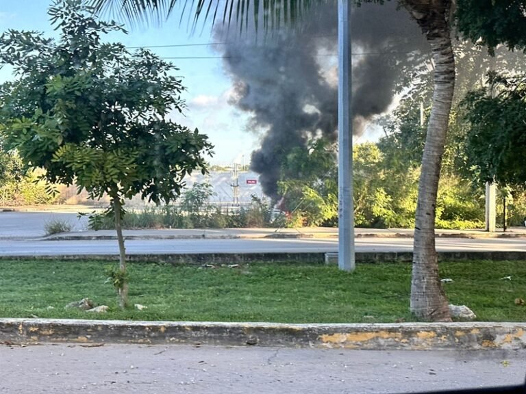 CANCÚN.- Un incendio de maleza generó una fuerte movilización de cuerpos de emergencia esta mañana en un terreno aledaño a un «encierro» de la empresa Autobuses de Oriente (ADO), en Cancún.