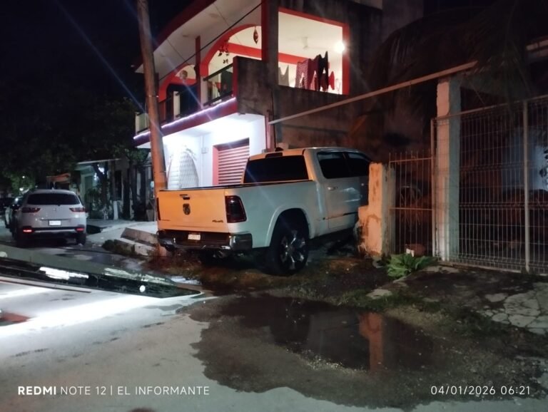 Chetumal.- Un aparatoso accidente se registró esta madrugada, cuando el conductor perdió el control y terminó estrellando su camioneta contra una vivienda, en la capital del estado.