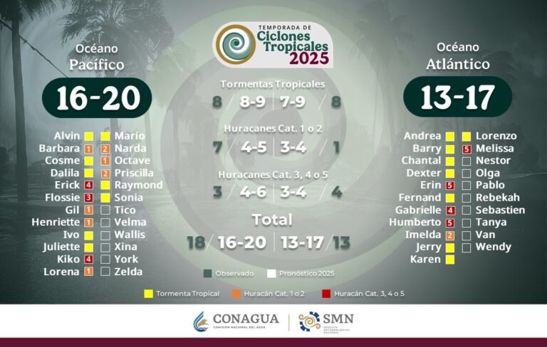 CANCÚN.- La Comisión Nacional del Agua (Conagua), a través del Servicio Meteorológico Nacional (SMN), informó que hoy concluye oficialmente la temporada de huracanes, tanto en el océano Pacífico como en el Atlántico. Esta fecha marca el fin del periodo activo de formación de ciclones tropicales, que inició el 15 de mayo en el Pacífico y el 1 de junio en el Atlántico.