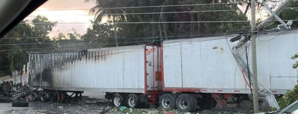 PLAYA DEL CARMEN.- Un tráiler que circulaba sobre la carretera federal en el tramo Tulum–Playa del Carmen protagonizó un aparatoso accidente la mañana de este viernes, luego de salirse del camino a la altura del acceso a Playacar, lo que ocasionó afectaciones al suministro eléctrico y una intensa movilización de cuerpos de emergencia.