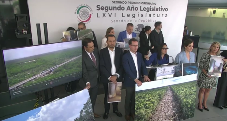 “Exigimos que de manera urgente se detenga el Tren Maya en el tramo cinco, si no va a haber una catástrofe en donde pueden perder vidas humanas”, afirmó la legisladora durante una conferencia respaldada por el Grupo Parlamentario del Partido Acción Nacional.